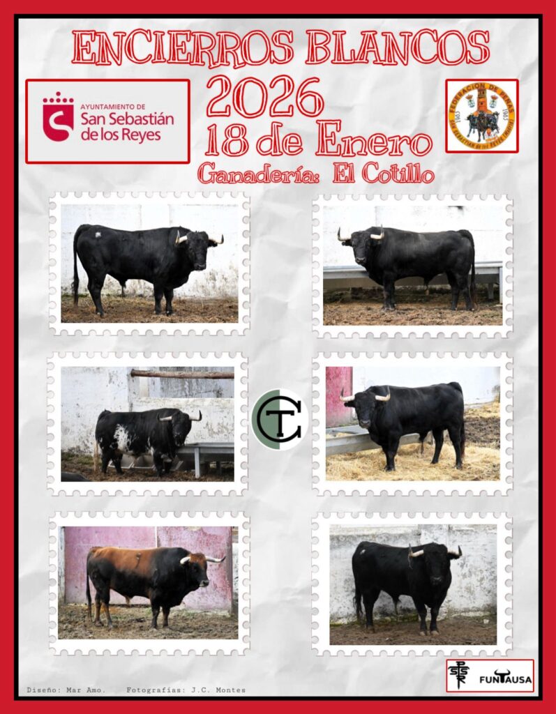 El Ayuntamiento de San Sebastián de los Reyes ha confirmado las dos ganaderías que protagonizarán los Encierros Blancos de la localidad, previstos para el fin de semana del 17 y 18 de enero de 2026.